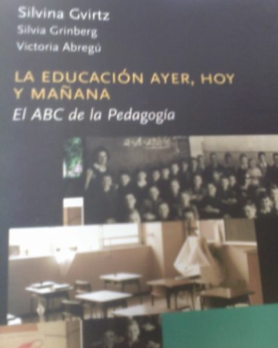 Gvirtz, Silvina; Grinberg, Silvia y Abregú, Victoria. La educación ayer, hoy y mañana. El ABC de la Pedagogía. Buenos Aires: Aique Grupo Editor, 2009. 160 p. ISBN: 978-987-06-0083-1. Comentario La educación ayer, hoy y mañana pertenece a la Colección Nueva Carrera Docente, dirigida por la Dra. Silvina Gvirtz. Se propone revisar conceptos básicos de la educación y considerar a la escuela como una forma posible, analizando su carácter histórico, no natural. Para ello, intenta desnaturalizar prácticas y conceptos, y descubrir que constituyen construcciones históricas. Las autoras sostienen que, reflexionar sobre ello, es el requisito necesario para pensar y construir la escuela del futuro.
