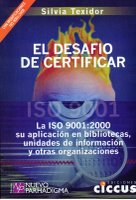 Texidor, Silvia. El desafío de certificar. La ISO 9001-2000 su aplicación en bibliotecas, unidades de información y otras organizaciones. Rosario: Ediciones Ciccus, jun., 2009, pp. 176. ISBN: 9789879355909.